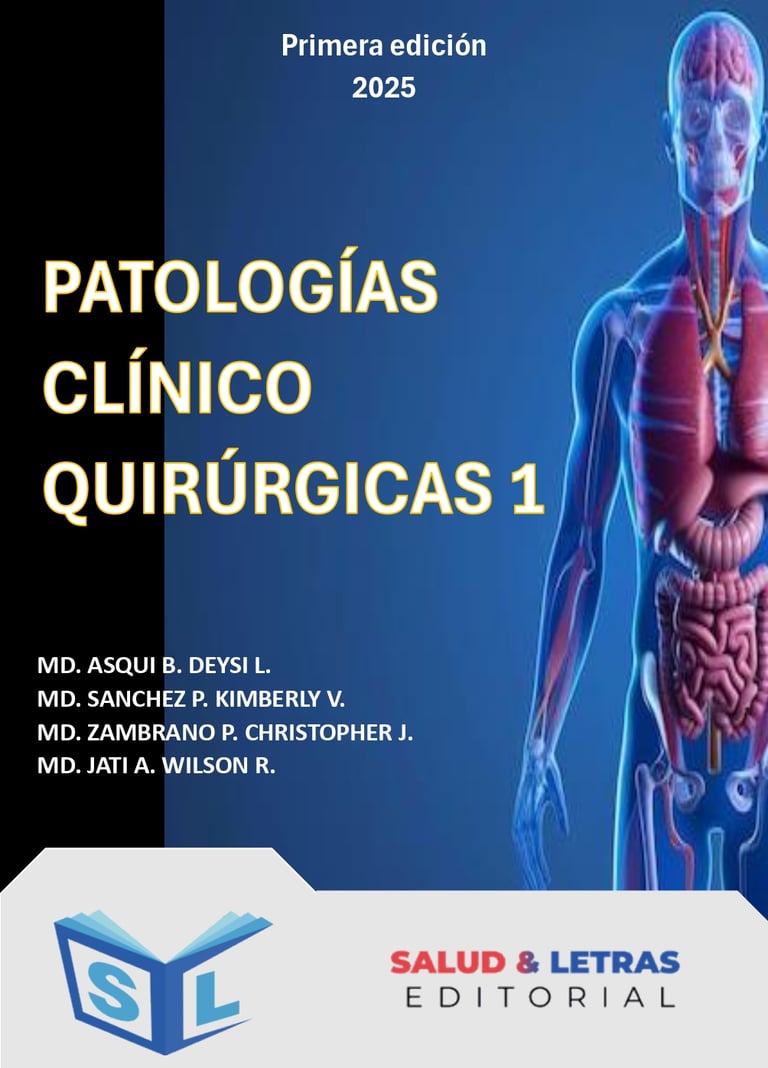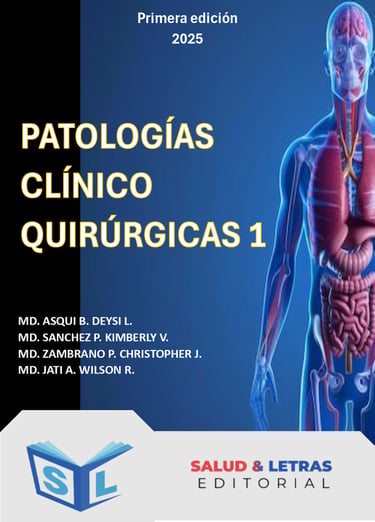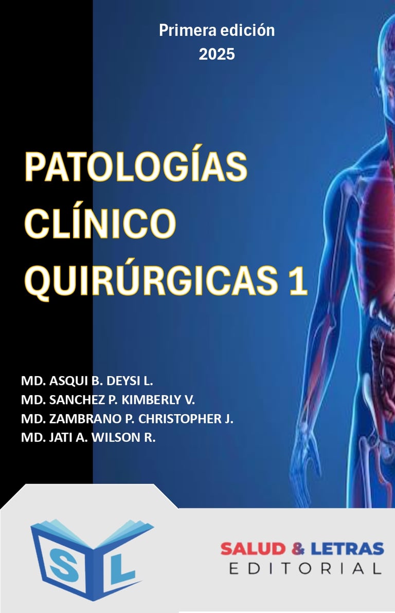 Salud & Letras como ente dedicado a la producción científica conoce que, en el ámbito quirúrgico y clínico se requiere la actualización permanente que permite incorporar nuevas terapias, técnicas diagnósticas y criterios de manejo, lo que es especialmente relevante en áreas donde los avances tecnológicos y biomoleculares modifican el abordaje de las enfermedades. Es así que se desarrolló esta obra denominada, “PATOLOGÍAS CLÍNICO QUIRÚRGICAS 1” que pretende mejorar el desarrollo de la práctica clínica y busca ser una guía para los estudiantes y profesionales de la salud. Este texto es parte de una serie de tres tomos que detallan desde la definición de cada patología revisada y otorga información clave para comprender el desarrollo la evolución, así como, orientar a el diagnóstico y establecer junto al juicio clínico una opción de manejo terapéutico de cada patología descrita.
